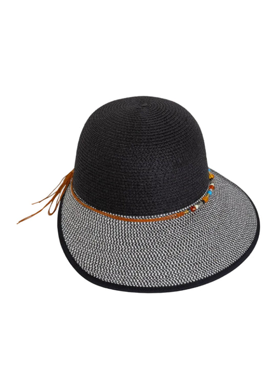 Magid Beaded Crown Two Tone Straw Bucket Hat
