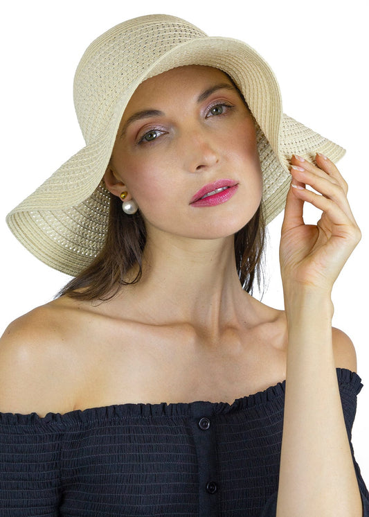 Magid Beaded Crown Two Tone Straw Floppy Hat