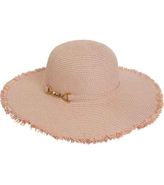 Magid Gold Metal Accent Frayed Brim Straw Floppy Hat