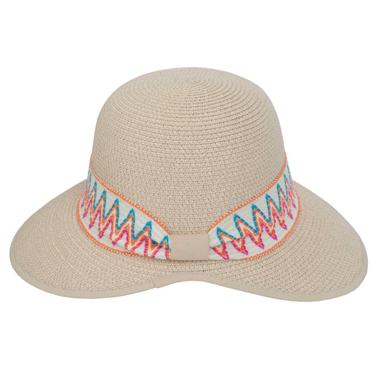 Magid Printed Ribbon & Frayed Brim Straw Garden Hat