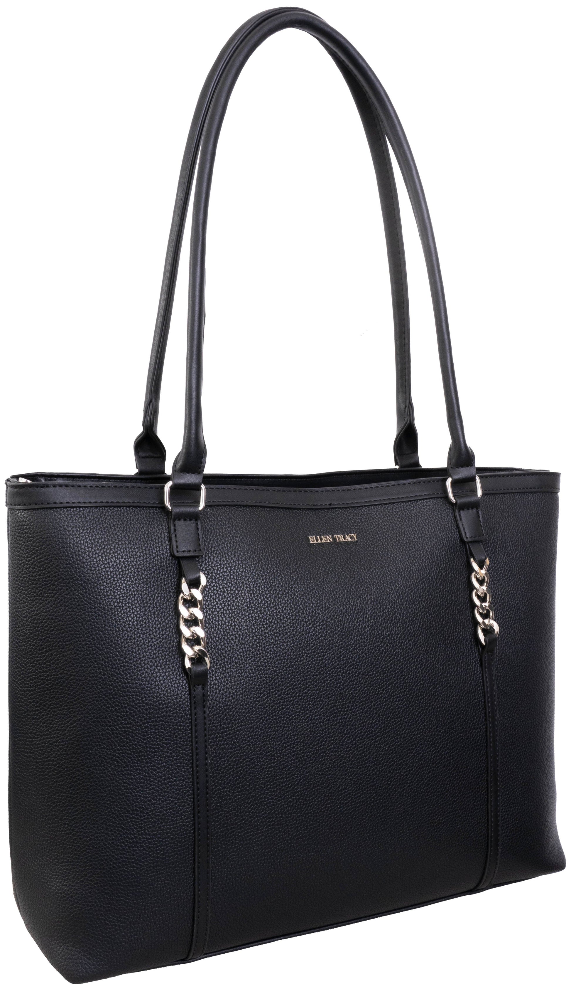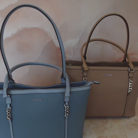 Elevate your style with the Ellen Tracy Chunky Chain Detail Tote — a sophisticated accessory that blends chic design with everyday practicality. Featuring a bold, eye-catching chunky chain accent, this versatile tote instantly enhances any outfit with modern elegance.